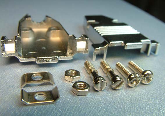 Right-angle connectors are available with full metal-shell,front metal-shell and all plastic versions.Full metal-shell connectors use a front and rear metal-shell clinched together to form the mounting flange.In the front metal-shell version,the shell is clinched directly to the plastic flange of the connector. In the front metal-shell connector, has integral 4-40 threaded screw holes.